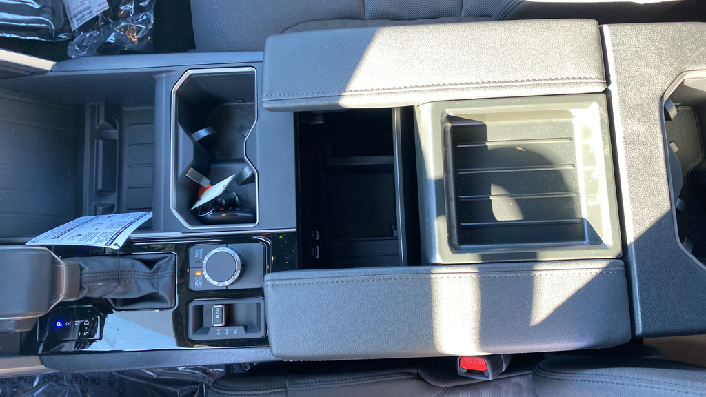 - Fixed center console with gated shift lever, driving controls, four cup holders, and center storage bin